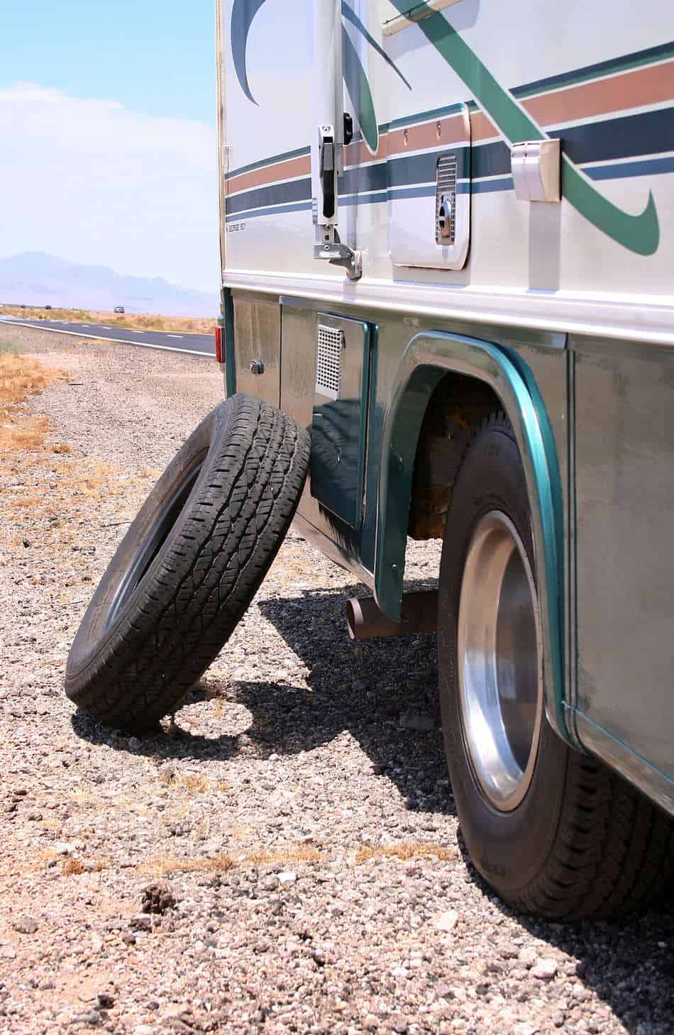 Straßenhindernisse wie große Schlaglöcher können gelegentlich zu Reifenschäden bei Wohnmobilen führen. In ein Schlagloch zu fahren kann Deinen Reifen beschädigen, und wenn die Wucht groß genug ist, kann das plötzliche Biegen der Seitenwand des Reifens dazu führen, daß die Seitenwand ausfällt.