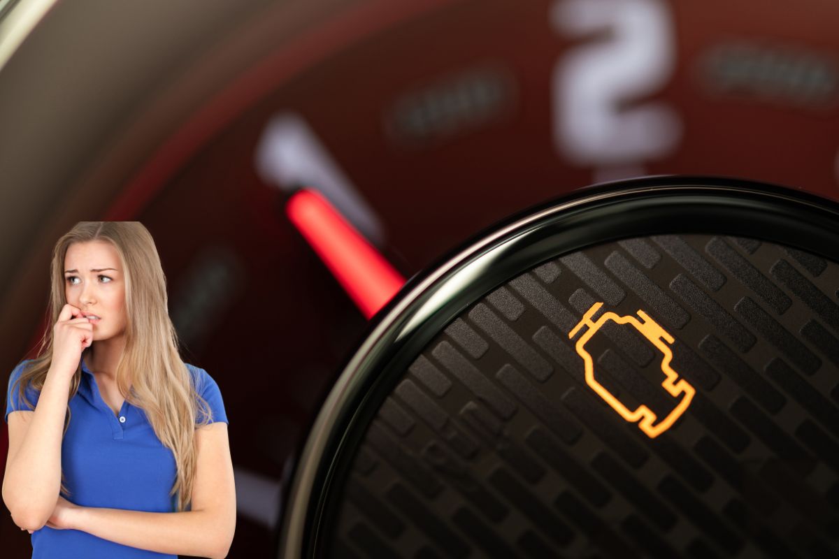 Titelfoto: Abgaskontrollleuchte leuchtet – Fahrerin ist verunsichert (Rechte: Canva)