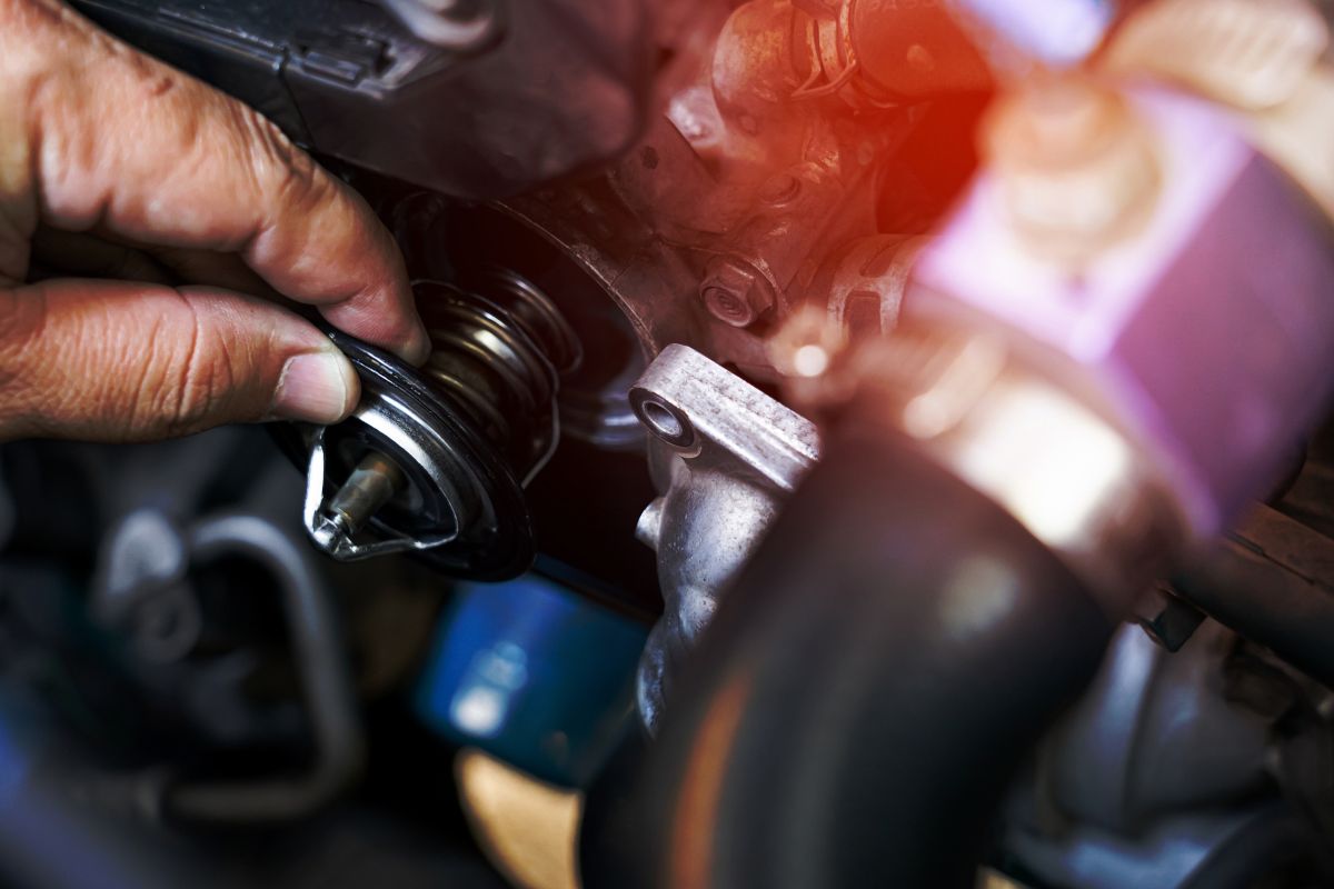 Titelfoto: Undichtes Kühlwasserthermostat wird ausgetauscht (Rechte: Canva)