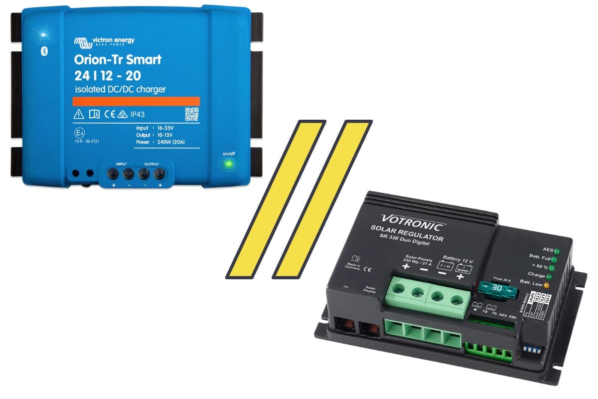 Titelfoto: Ladebooster & Solarregler parallel (Quelle: victronenergy & kesselheld)