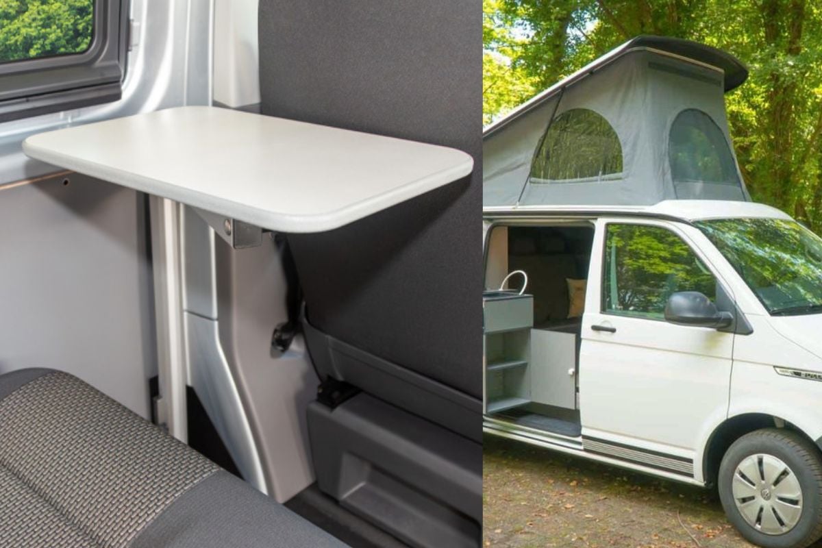 Eine andere Alternative sind sogenannte Klapptische für den VW T6 Transporter.