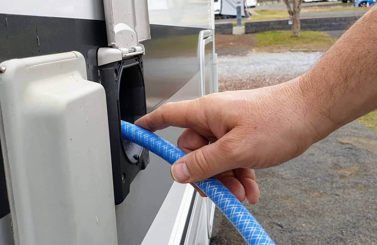- Auch in dem Schlauch, der zum Wasser tanken genutzt wird, bleibt immer Restwasser stehen. Hier lässt du auch vor dem Tanken Wasser durchlaufen.