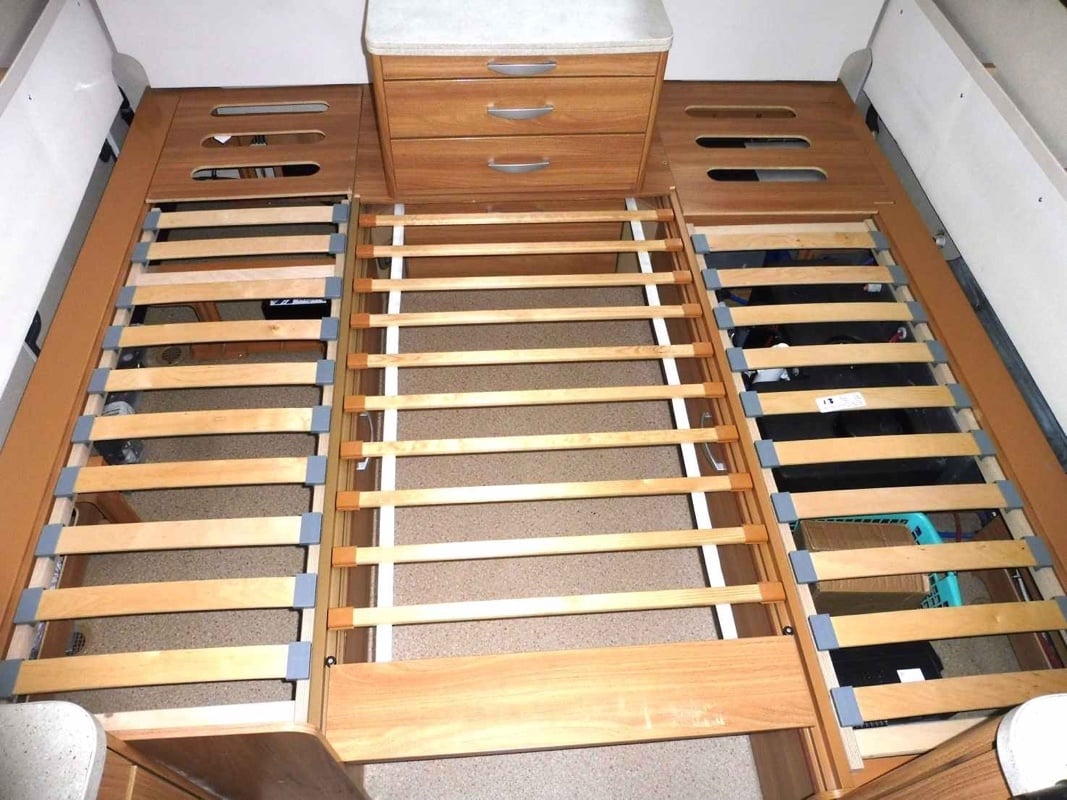 Diese Methode bietet übrigens auch eine gute Alternative, wenn du einen Wohnwagen Lattenrost nachrüsten willst, da serienmäßig zum Beispiel nur Platten oder der Tisch als Liegefläche dienen.