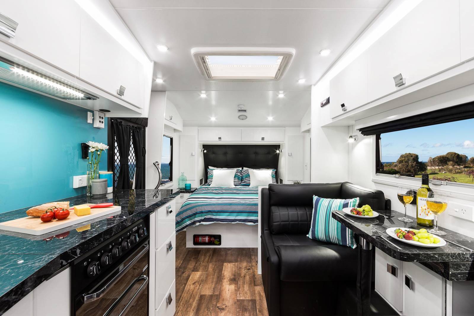 Titelfoto: Wohnwagen mit selbst gestalteter Inneneinrichtung (Rechte: Lotus Caravans)